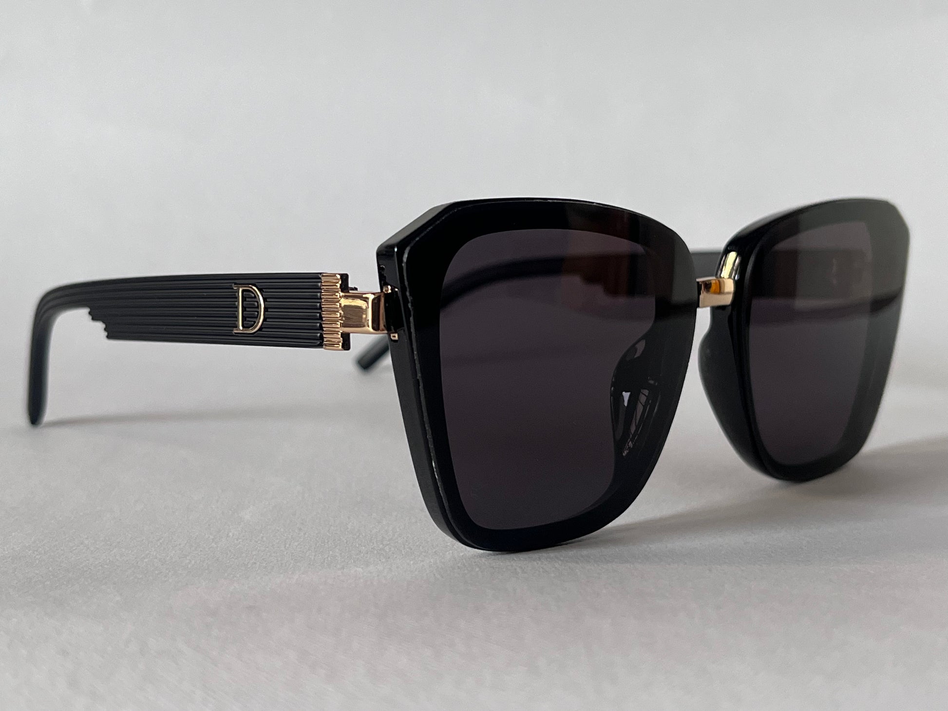 Transparent, bold, and opulent – the Noir Luxe Cat-Eye Shades feature glossy black-tinted transparent lenses with golden detailing on the nose bridge. Decorative golden temples elevate the luxury, making this a rich, statement-ready piece.