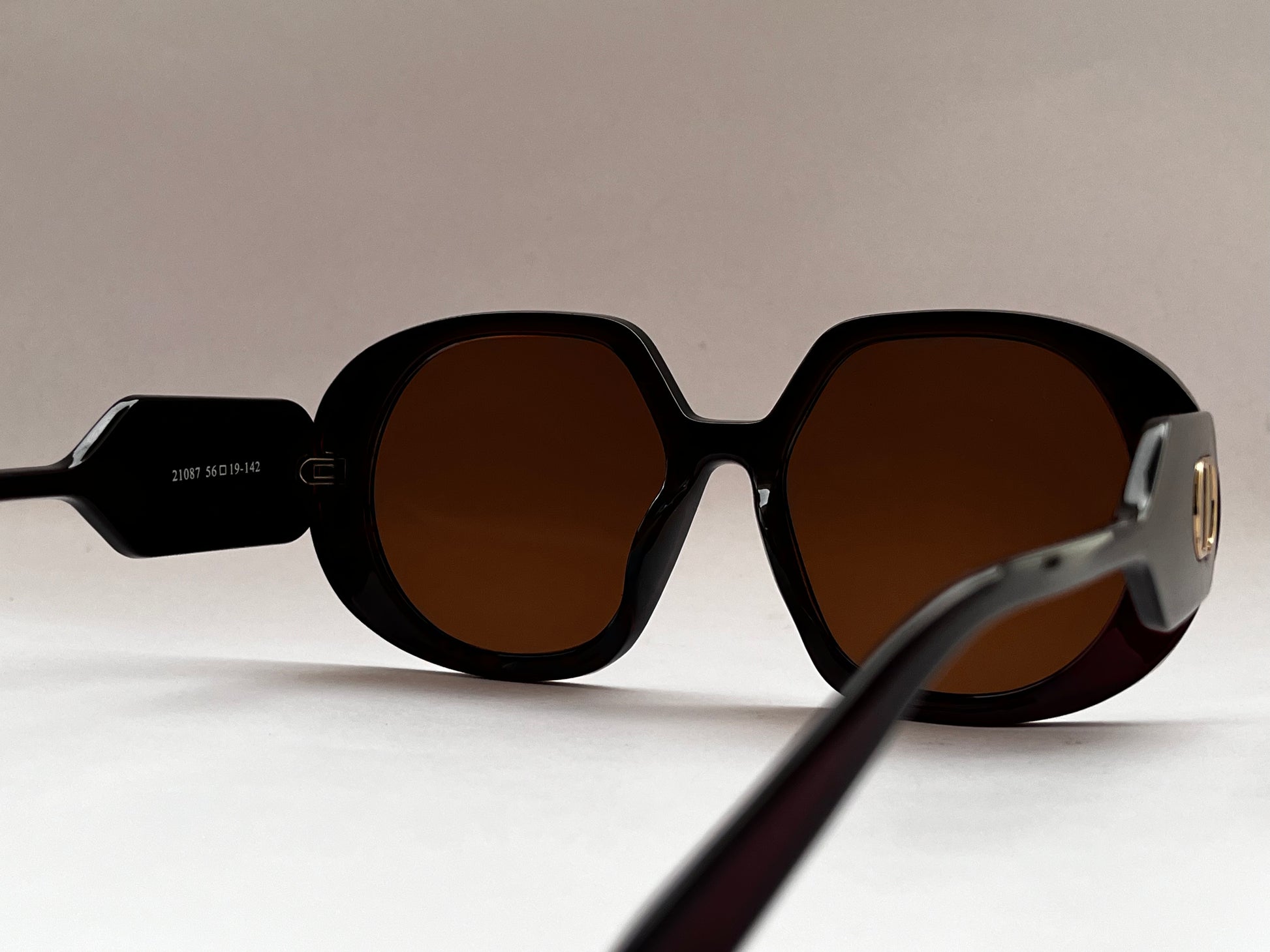 Chunky, bold, and effortlessly luxurious – the D-EDGE CHUNKY BROWN SHADES feature semi-circular D-shaped frames with a thicker front for maximum impact. The temples taper elegantly behind the ears, adorned with a golden decorative logo, while the brown tinted UV lenses keep you stylish and protected. Perfect for making a statement.