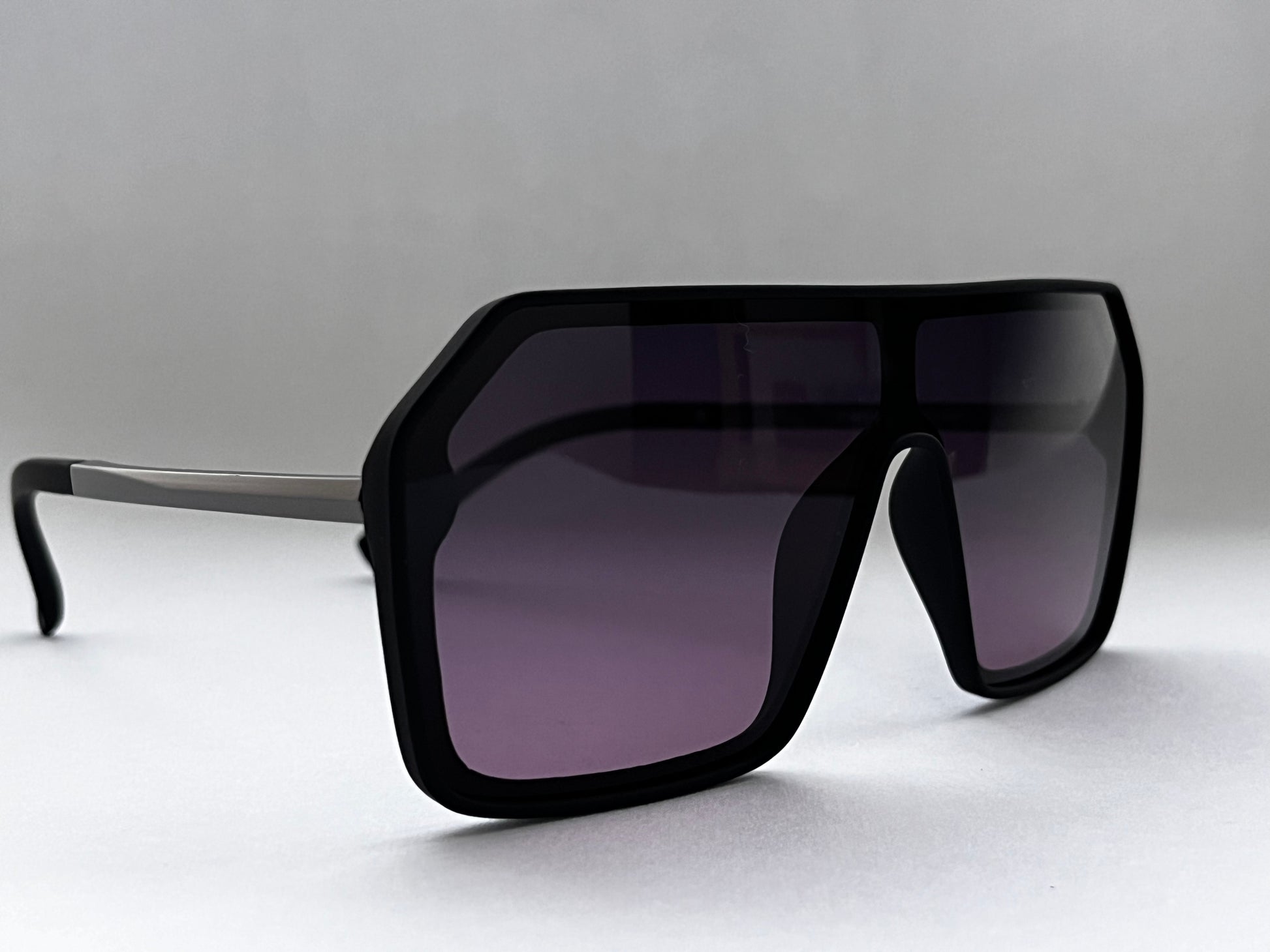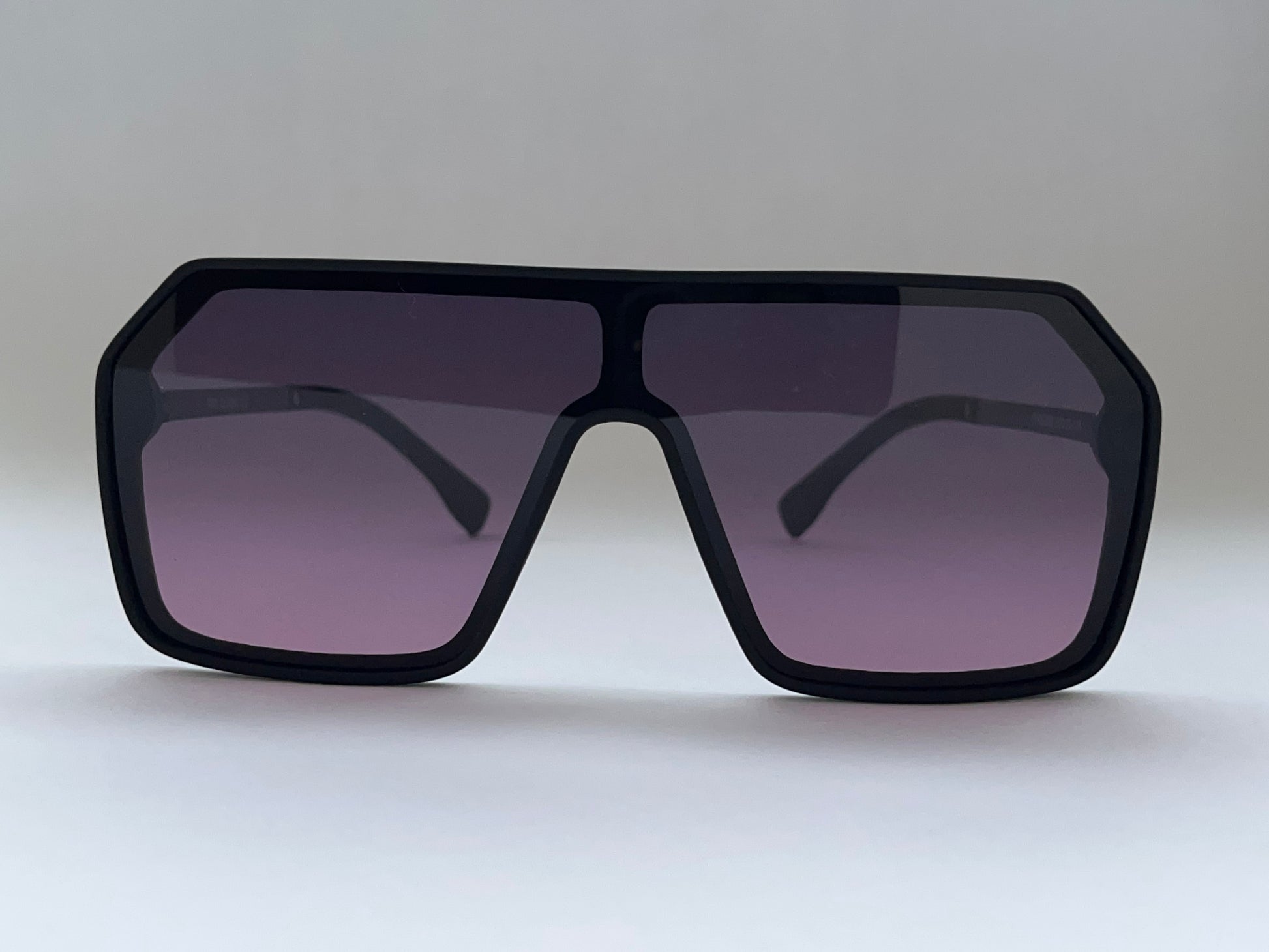 Chic, bold, and unisex – Amethyst Bomber Shades feature glossy black bomber frames with purple-tinted lenses and black temples. Modern, impactful, and versatile for everyday style.