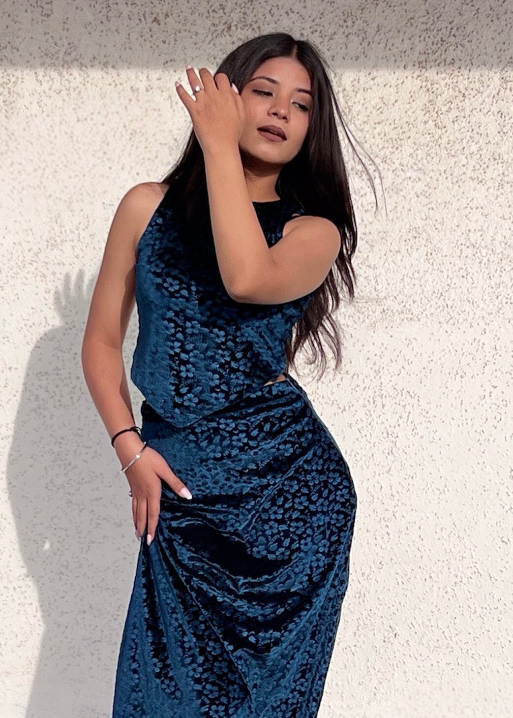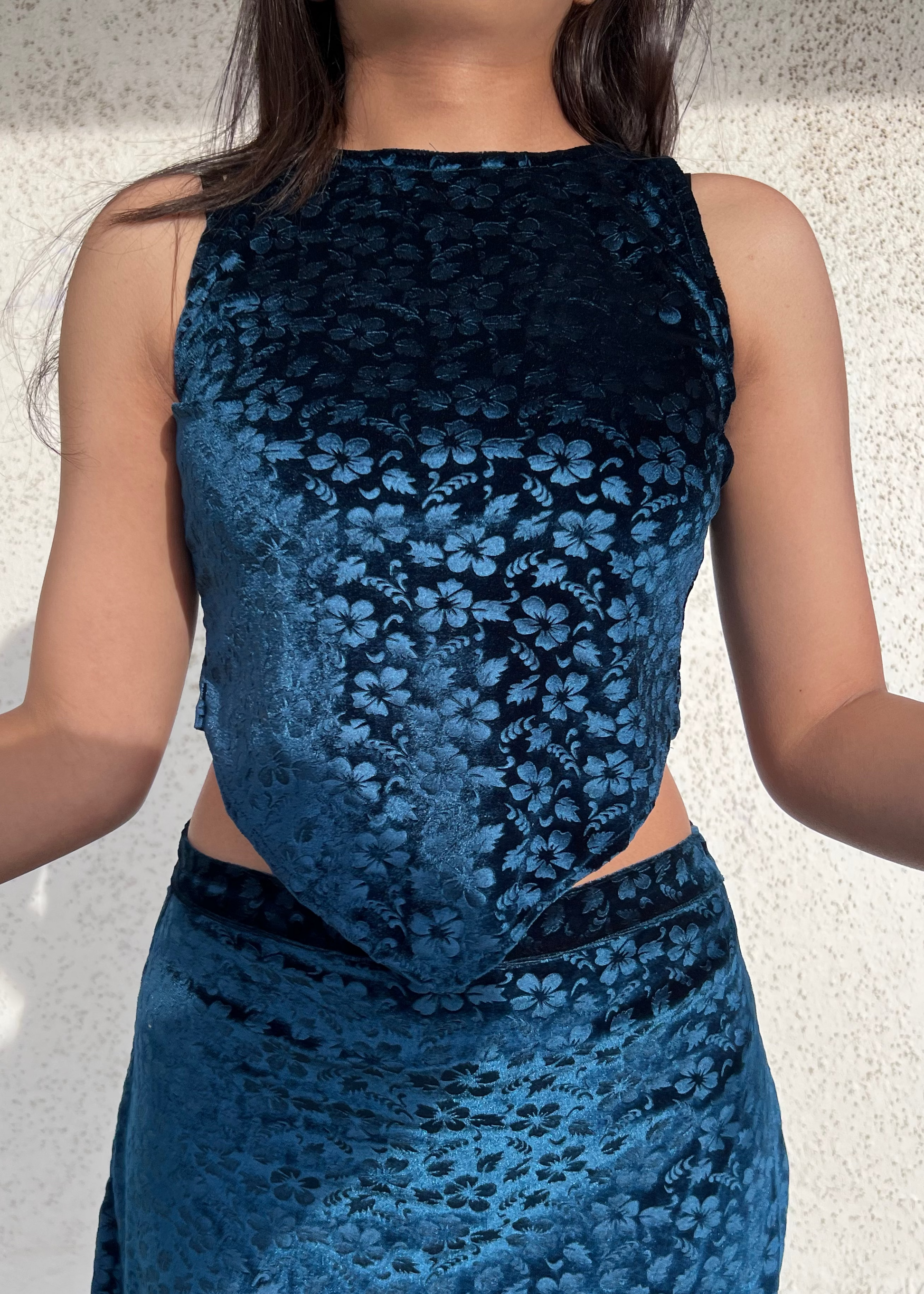 DARK BERRY l FLORAL VELVET SKIRT SET