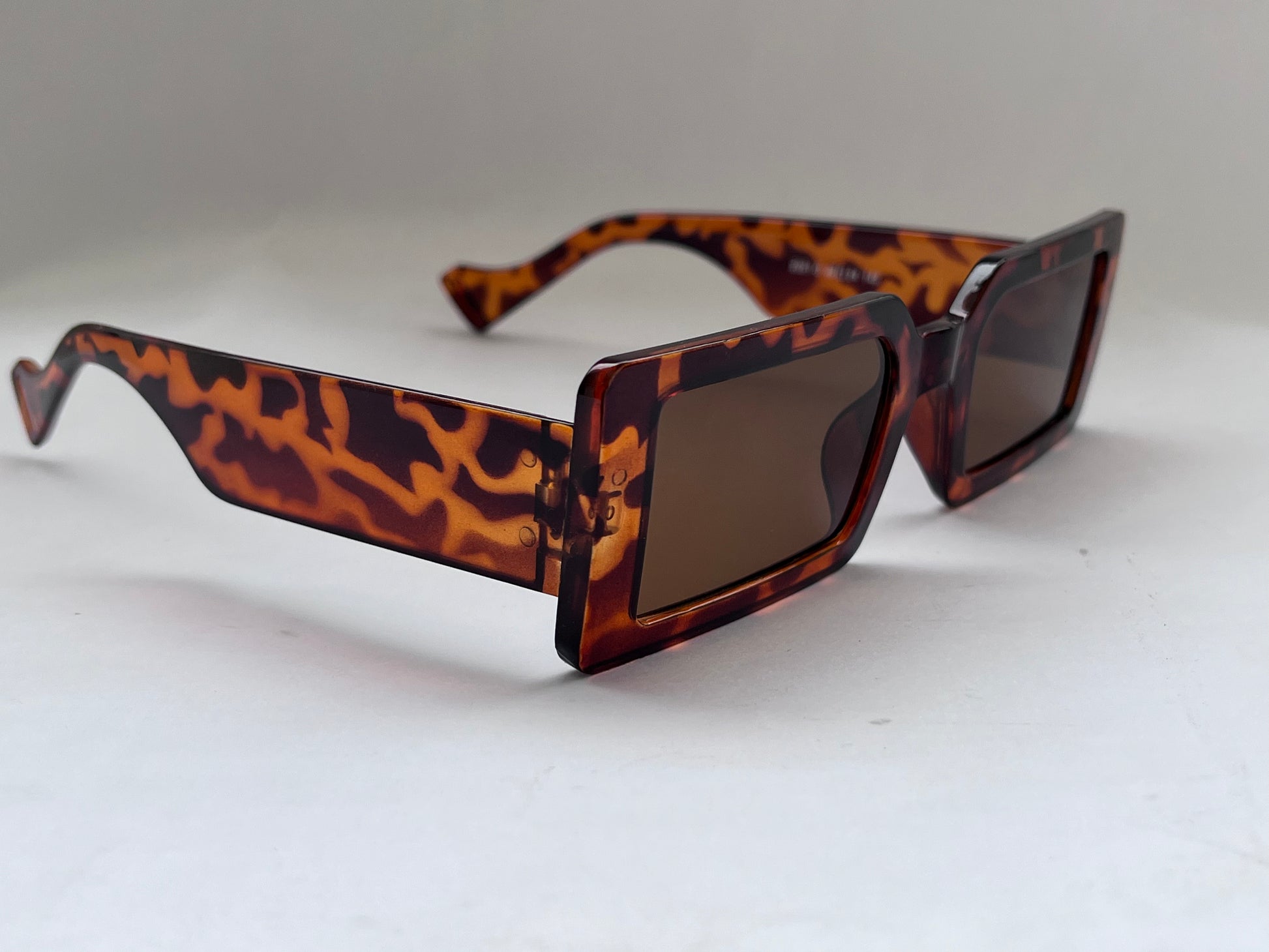 Bold, trendy, and perfect for Gen Z – the Elongated Rectangular Leopard Shades feature wide rectangular leopard print frames with chunky temples and brown UV-protected lenses. A vintage-inspired yet edgy piece for modern statement wear.