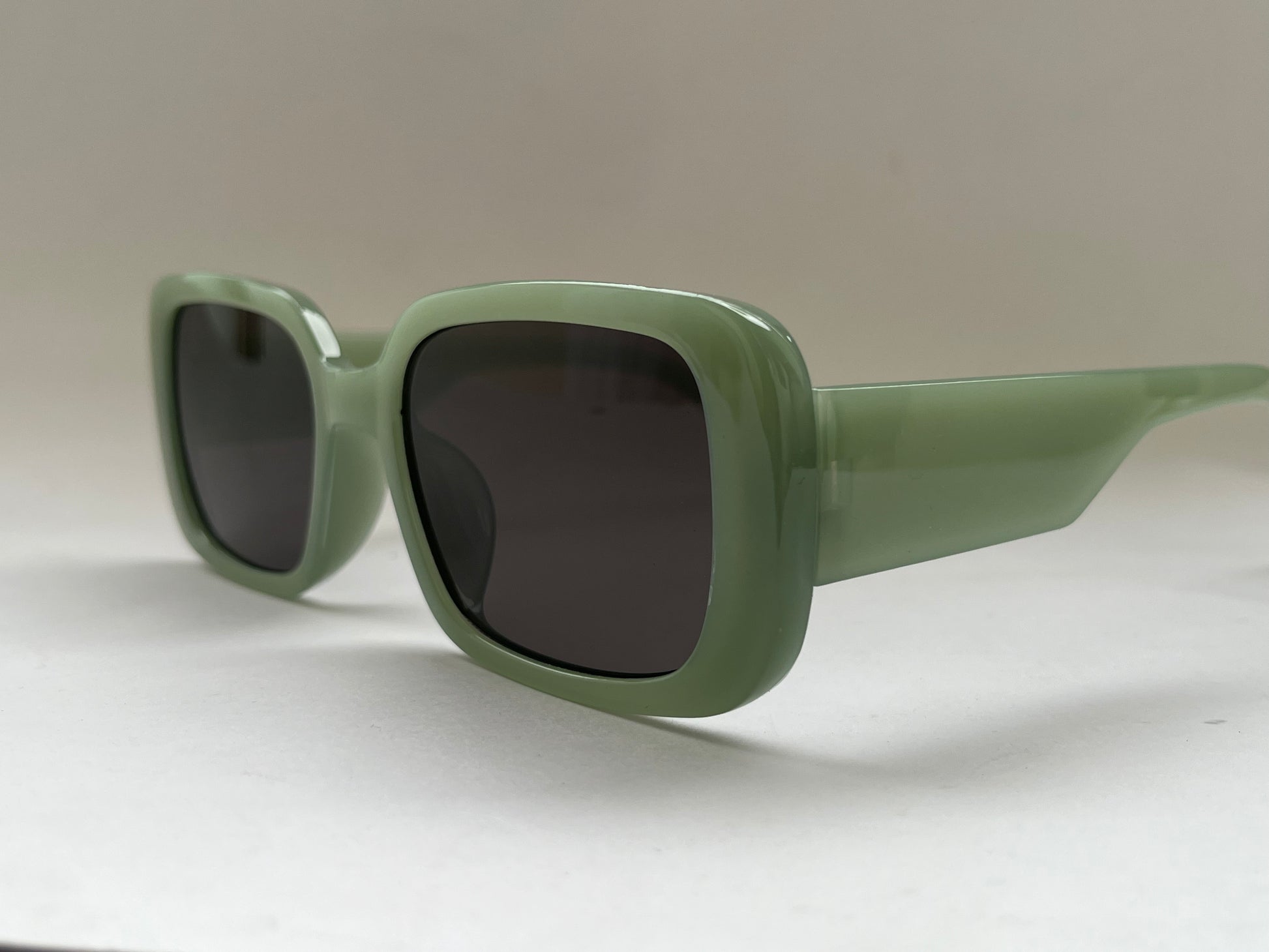 Earthy. Elevated. Effortlessly bold. The Olive Drip Frosted Shades feature oversized, square rectangular frames crafted from glossy, clouded-clear acetate in a unique olive green tone. With matching frosted wide temples and sleek black UV-protected lenses, these sunnies serve high fashion with a grounded edge. Whether it’s sunlit streets or night-out scenes, these are the kind of shades that make you the vibe.