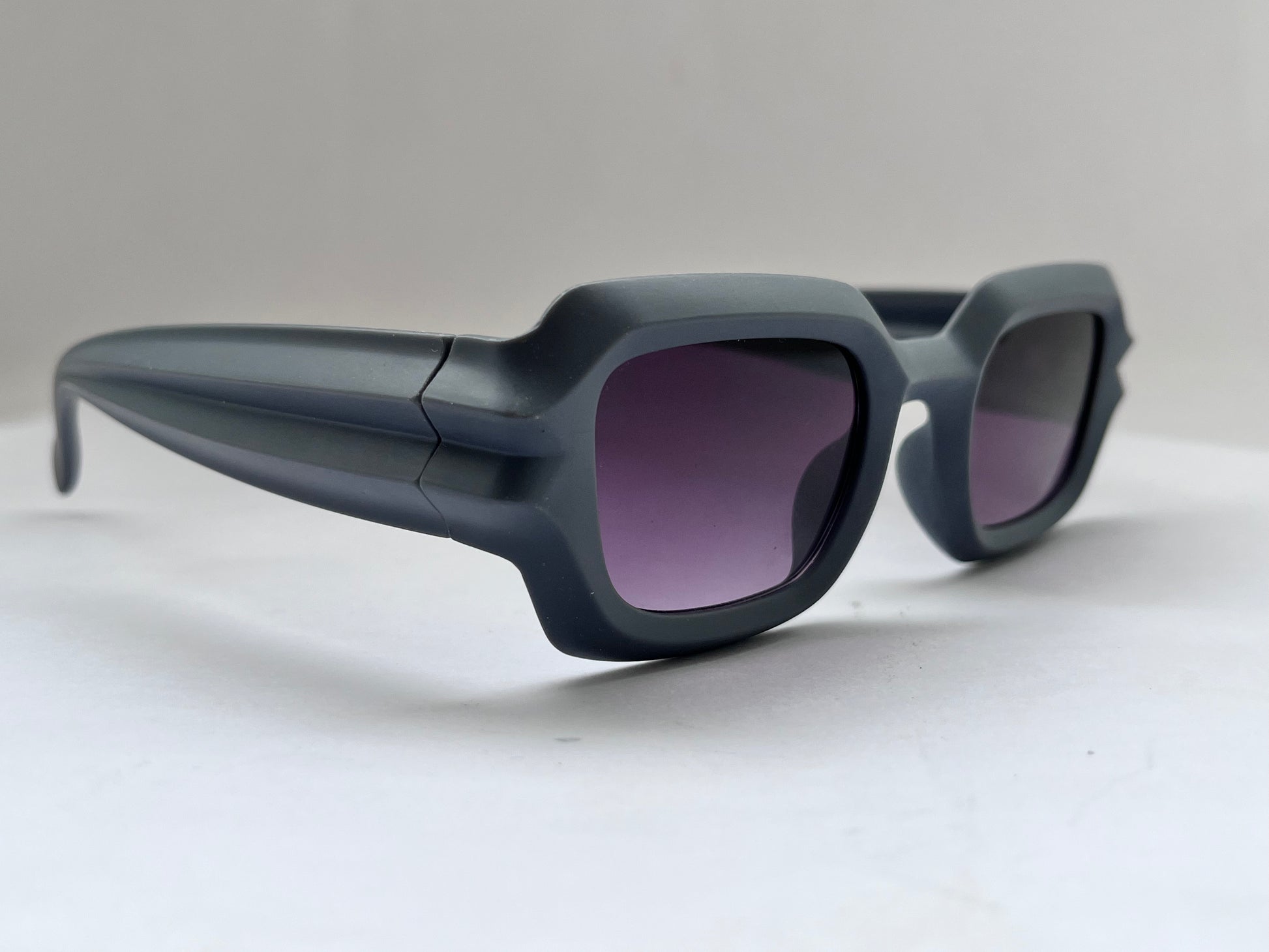 Subtle yet statement-making – the Grey Lash Matte Square Shades feature matte grey square frames with thicker embossed temples that resemble eyelashes. Black UV-protected lenses complete the look, blending fashion and functionality for everyday luxe wear.