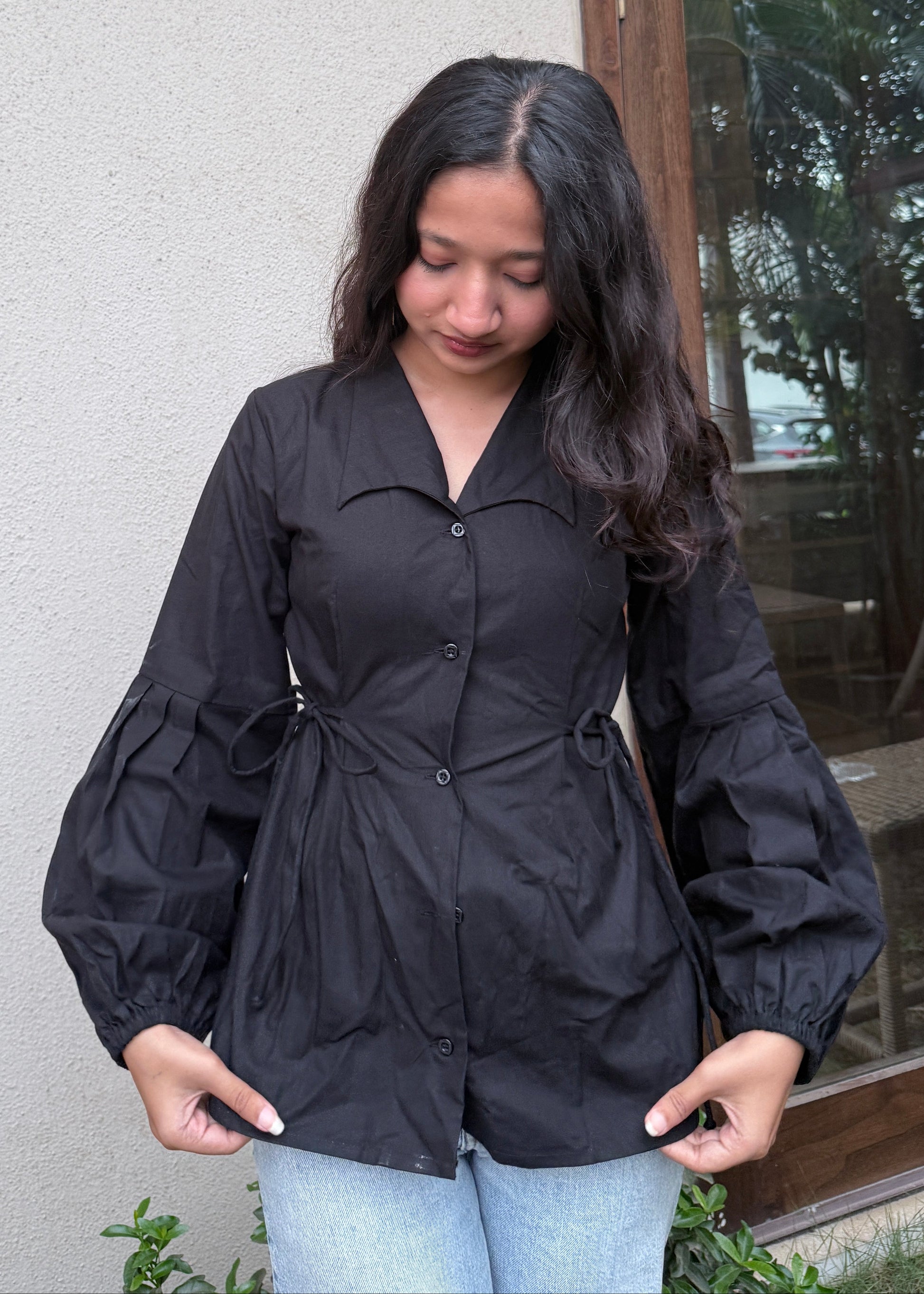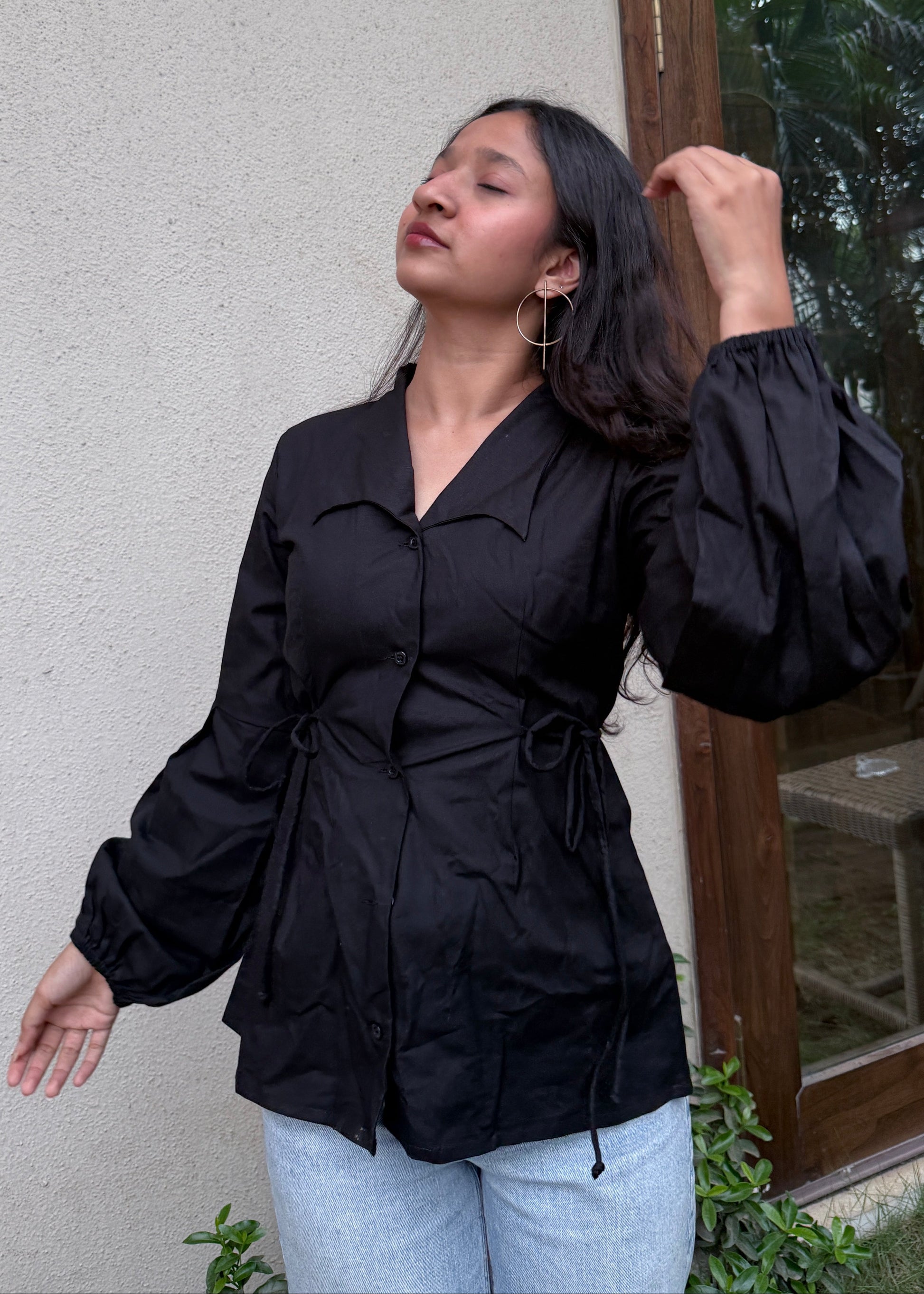Not your average shirt; the Jet Shirt is pure power wrapped in structure and drama. Crafted from 100% cotton, this standout piece features double adjustable knots at the front and back to cinch your waist from both sides, creating a sculpted silhouette that commands attention.