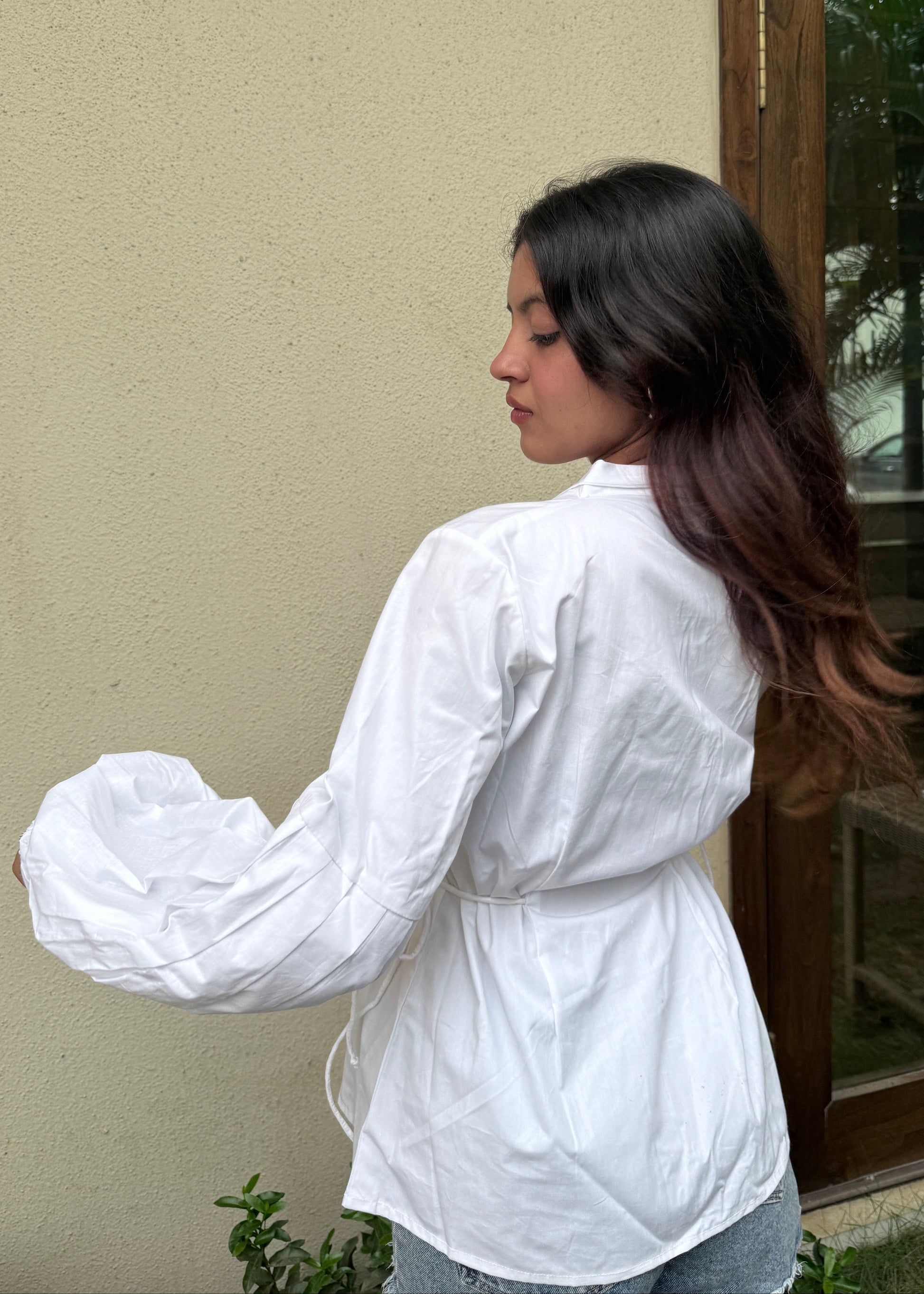 Not your average shirt; the Jet Shirt is pure power wrapped in structure and drama. Crafted from 100% cotton, this standout piece features double adjustable knots at the front and back to cinch your waist from both sides, creating a sculpted silhouette that commands attention.