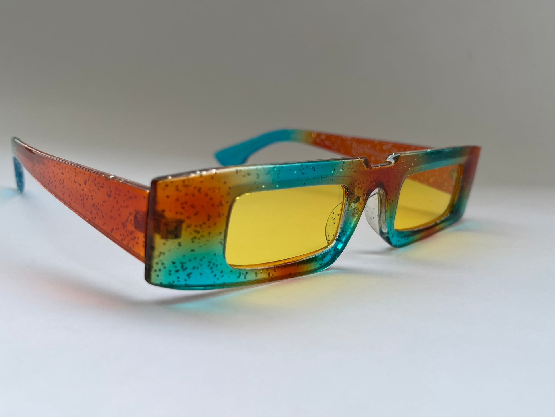 Turn heads and own the spotlight with the Sunburst Spectrum Shades - a bold fusion of multicolored sleek frames and vibrant yellow-tinted lenses. These wide, fashion-forward sunglasses add instant celebrity flair to any outfit, effortlessly transforming even the most basic look into a style statement. Perfect for festivals, streetwear fits, or just leveling up your everyday vibe.