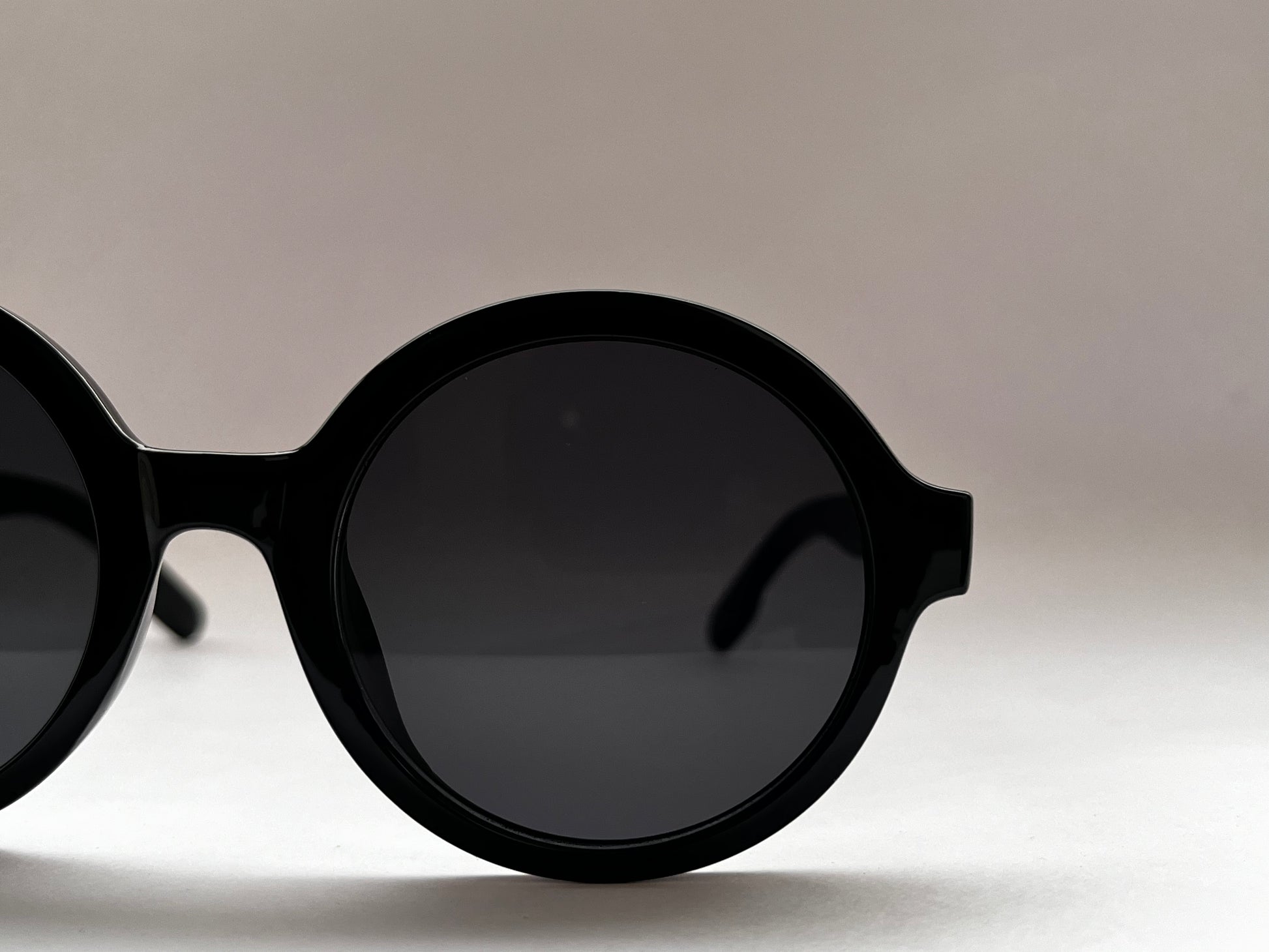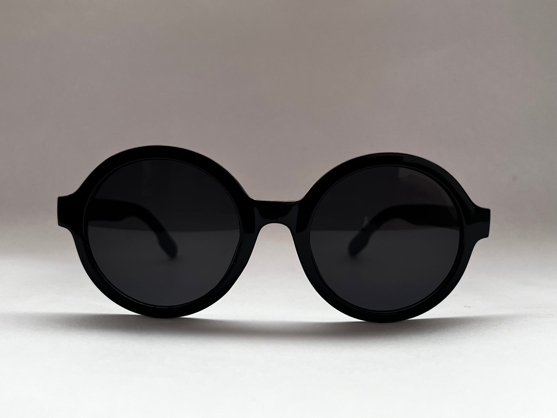 Sleek, minimal, and timeless – the Black Orbit Round Shades feature glossy black round frames with black UV-protected lenses. A versatile pair that embodies understated elegance, perfect for everyday wear.